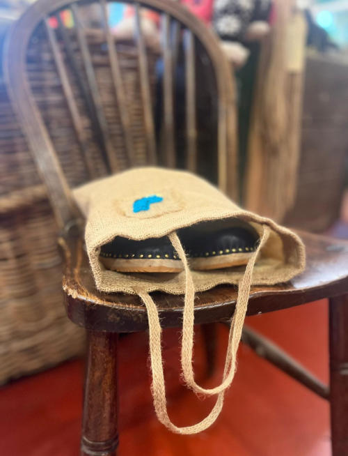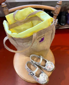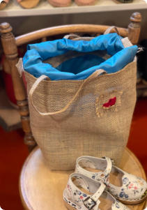 Beautiful strong hand made Hessian bags, with a choice of linings, a cute clog logo added to the bag.