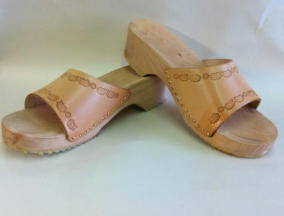 HAND TOOLED TOELESS SLIP ON This toe less slip on clog is hand tooled and the leather can be dyed almost any colour of your choice, or if preferred left natural. Adult size 36-41